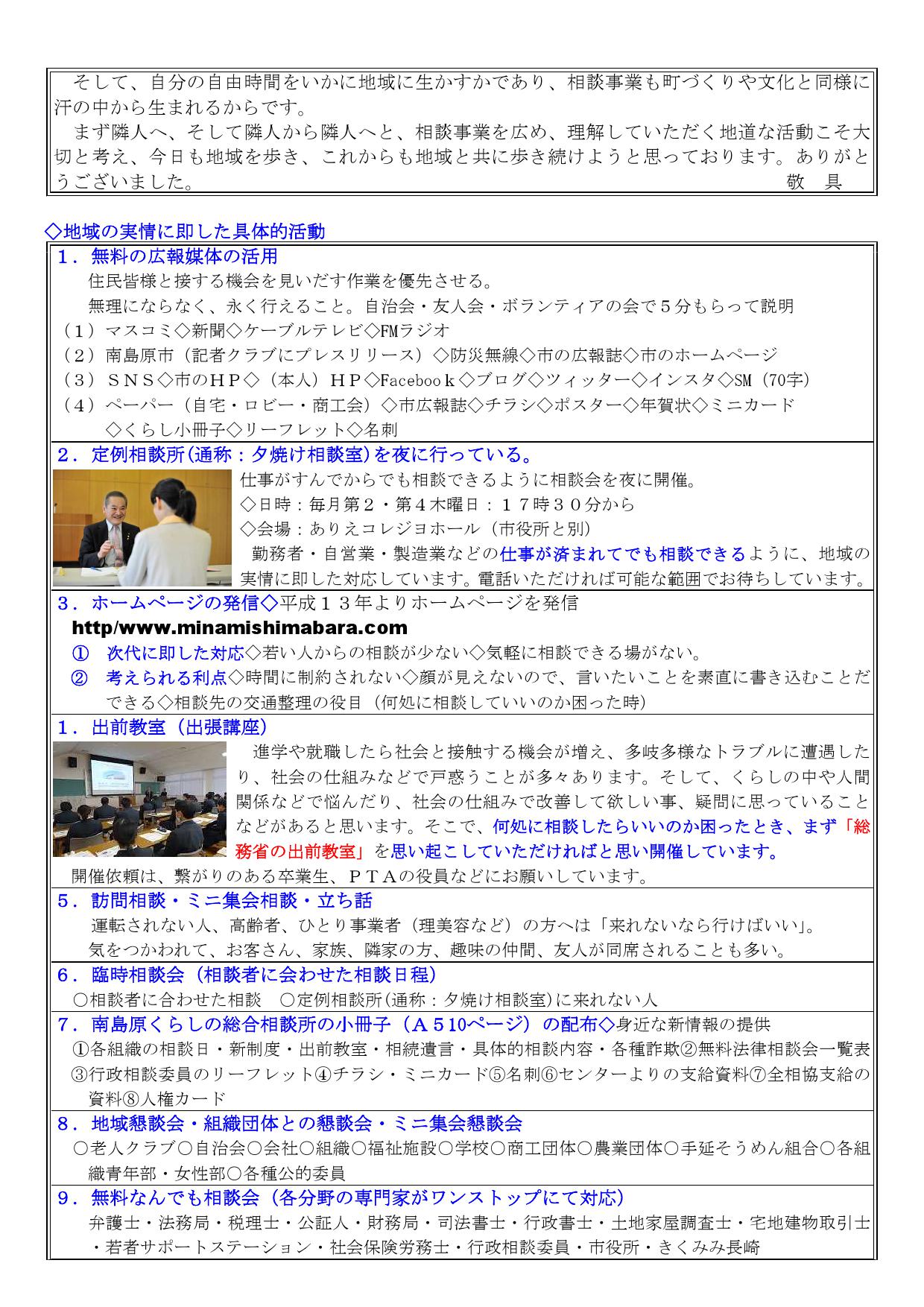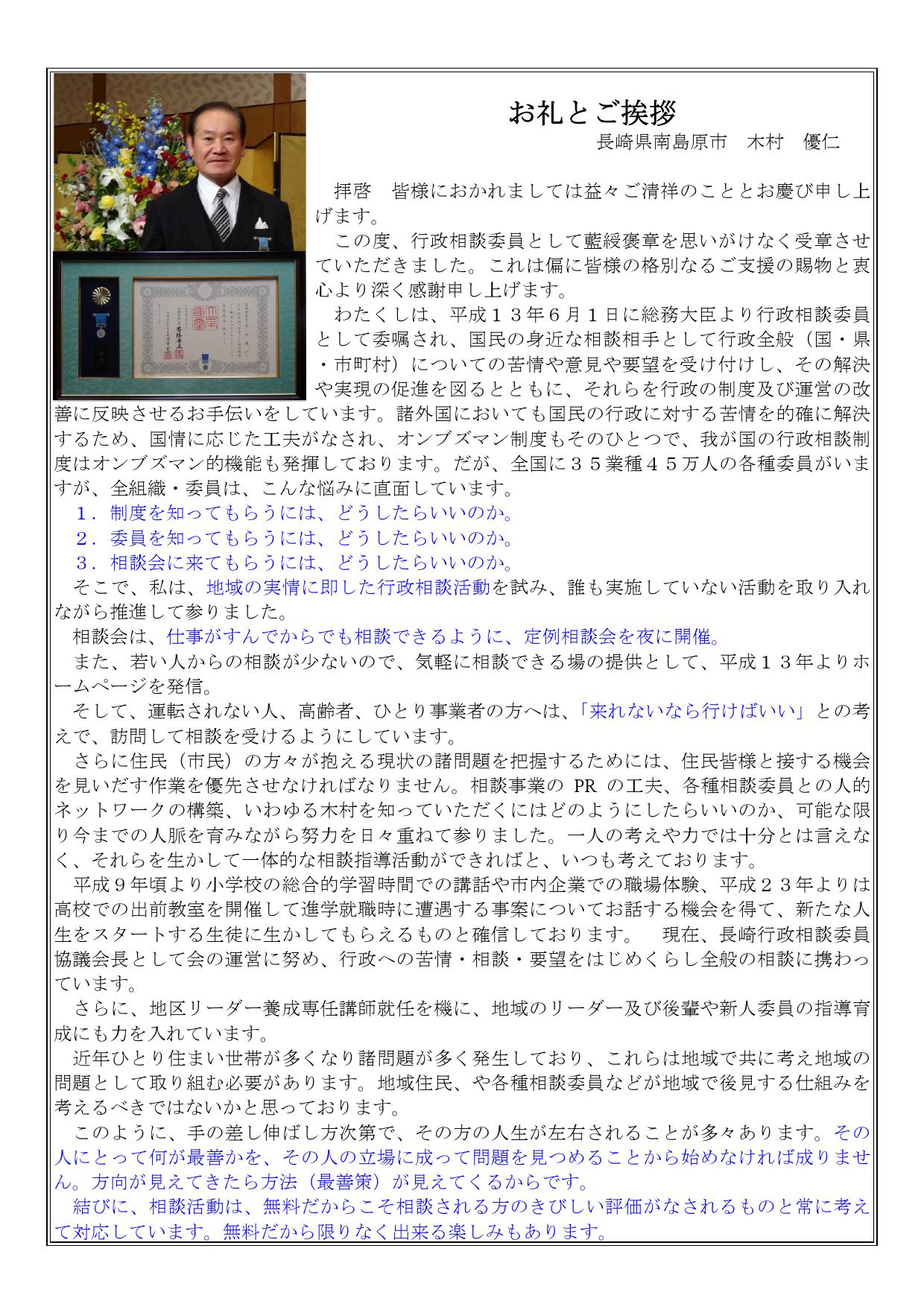 行政相談委員・・・国の仕事に関する苦情などの相談を受付け、助言や関係行政機関に対する通知などを行なっています。